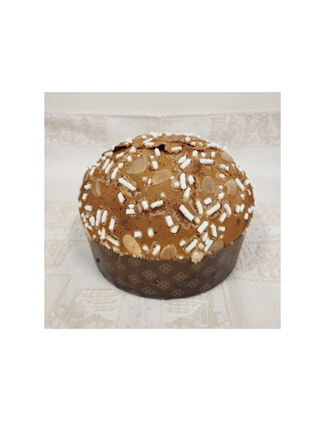 - Farina 0, zucchero, tuorlo d’uovo, acqua, burro, latte, uva sultanina, scorza di cedro e arancia candita, lievito naturale e di birra, essenze e aromi naturali, sale.