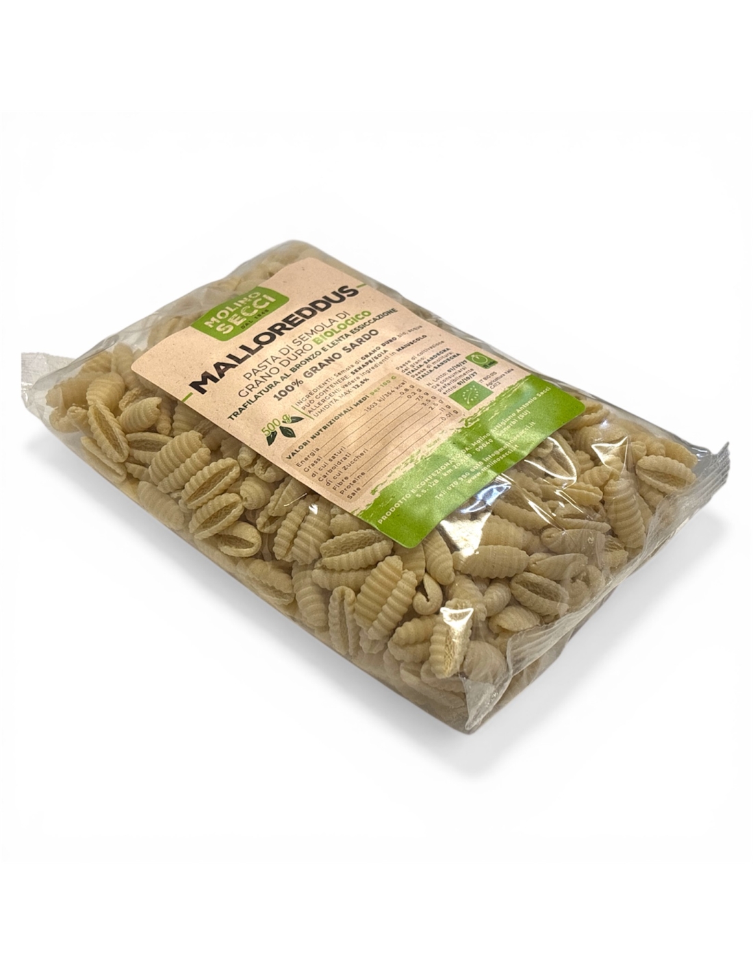 I malloreddus sardi sono una pasta tradizionale di semola di grano duro, dalla forma corta e rigata, perfetta per trattenere i condimenti. Conosciuti anche come “gnocchetti sardi”, hanno una consistenza compatta e un sapore autentico che li rende ideali per sughi ricchi, in particolare con salsiccia, pomodoro e formaggio. Un grande classico della cucina sarda, simbolo di tradizione e genuinità.