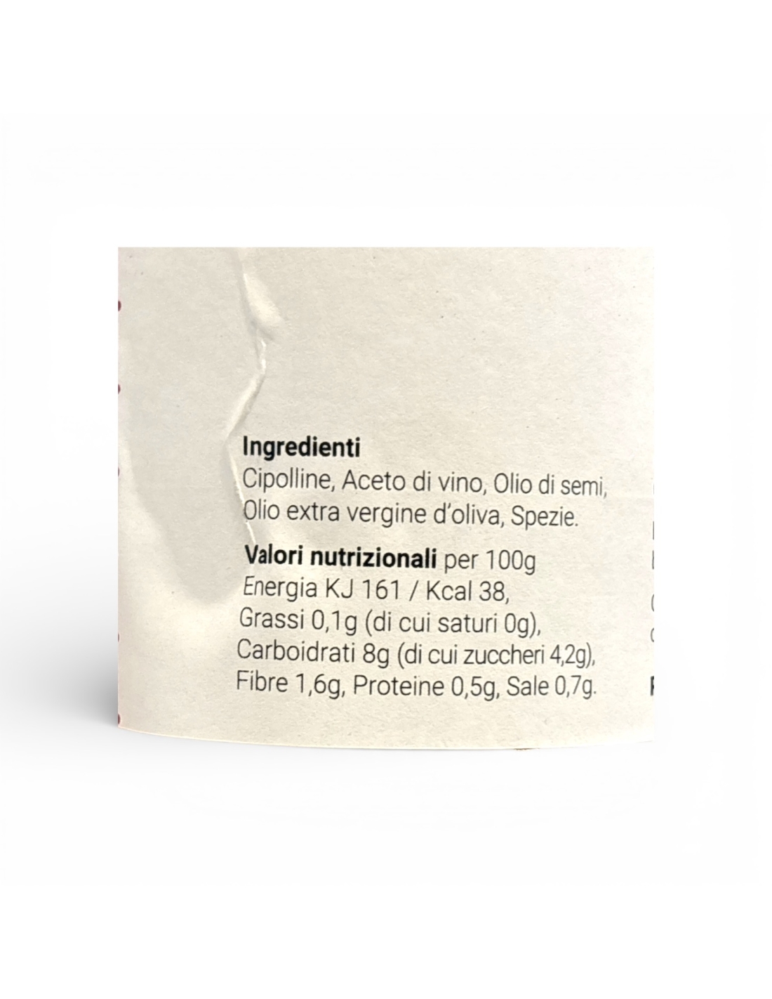 Cipolline, aceto di vino, olio di semi, olio extravergine di oliva, spezie