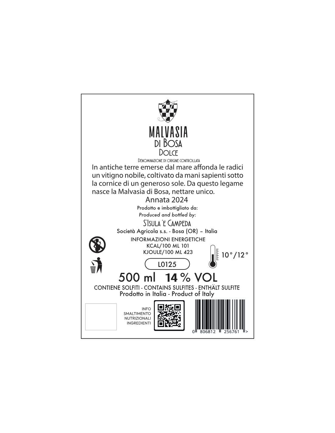 Malvasia di Bosa DOC Annata 2024 - Cantina S'Isula 'e Campeda
